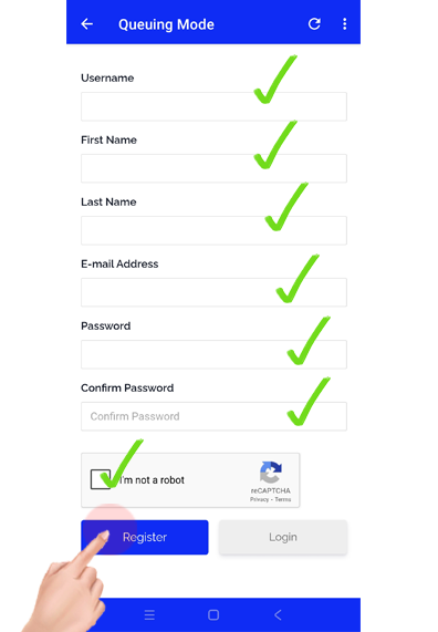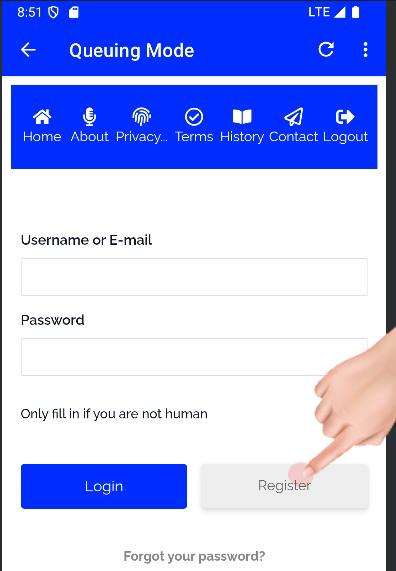 Tap the register button to proceed to the registration page.