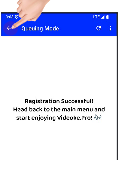 After successfully registering on Videoke Pro, click the back arrow to return to the main menu. If you're using a desktop, simply click the Videoke Pro button to open the app and start enjoying its features.